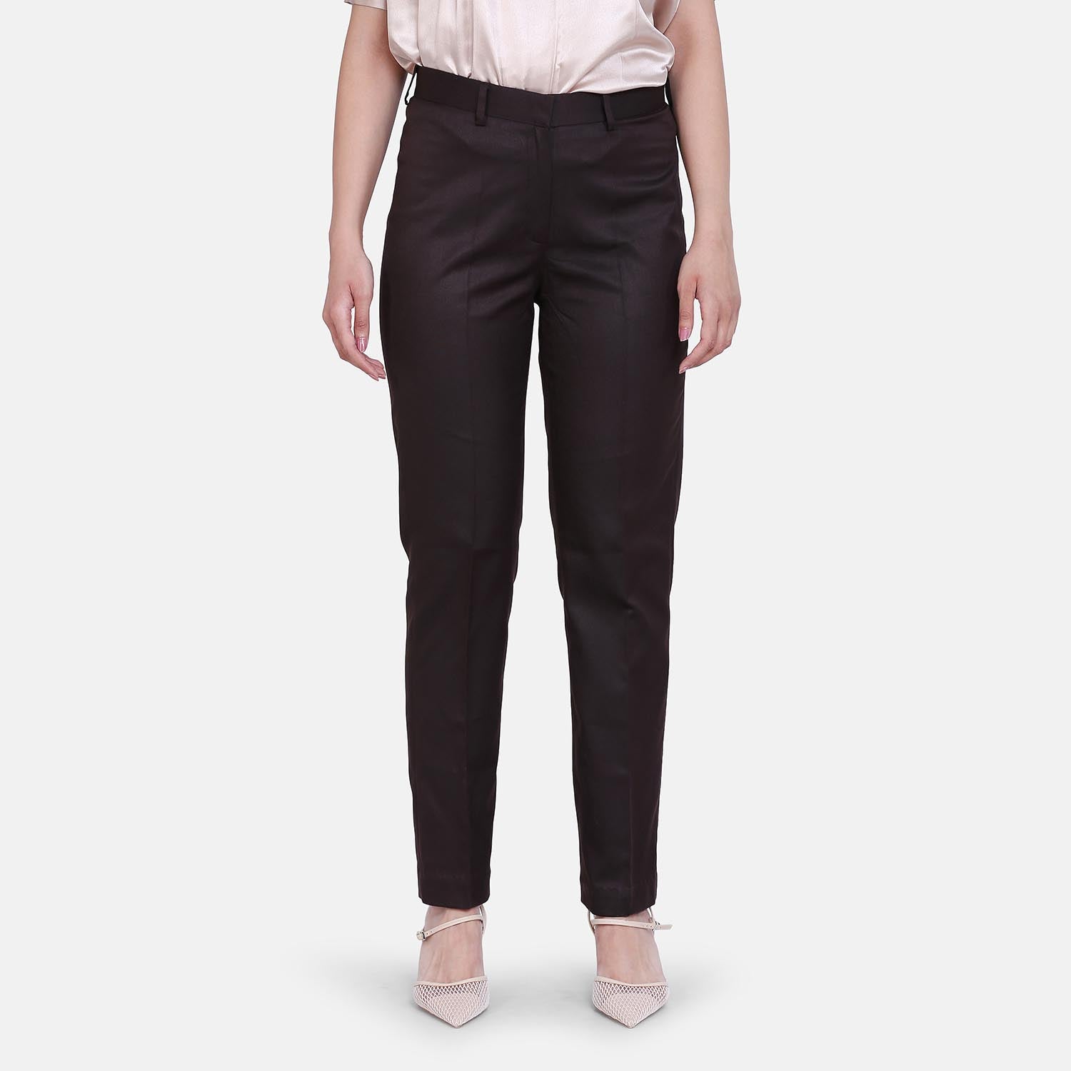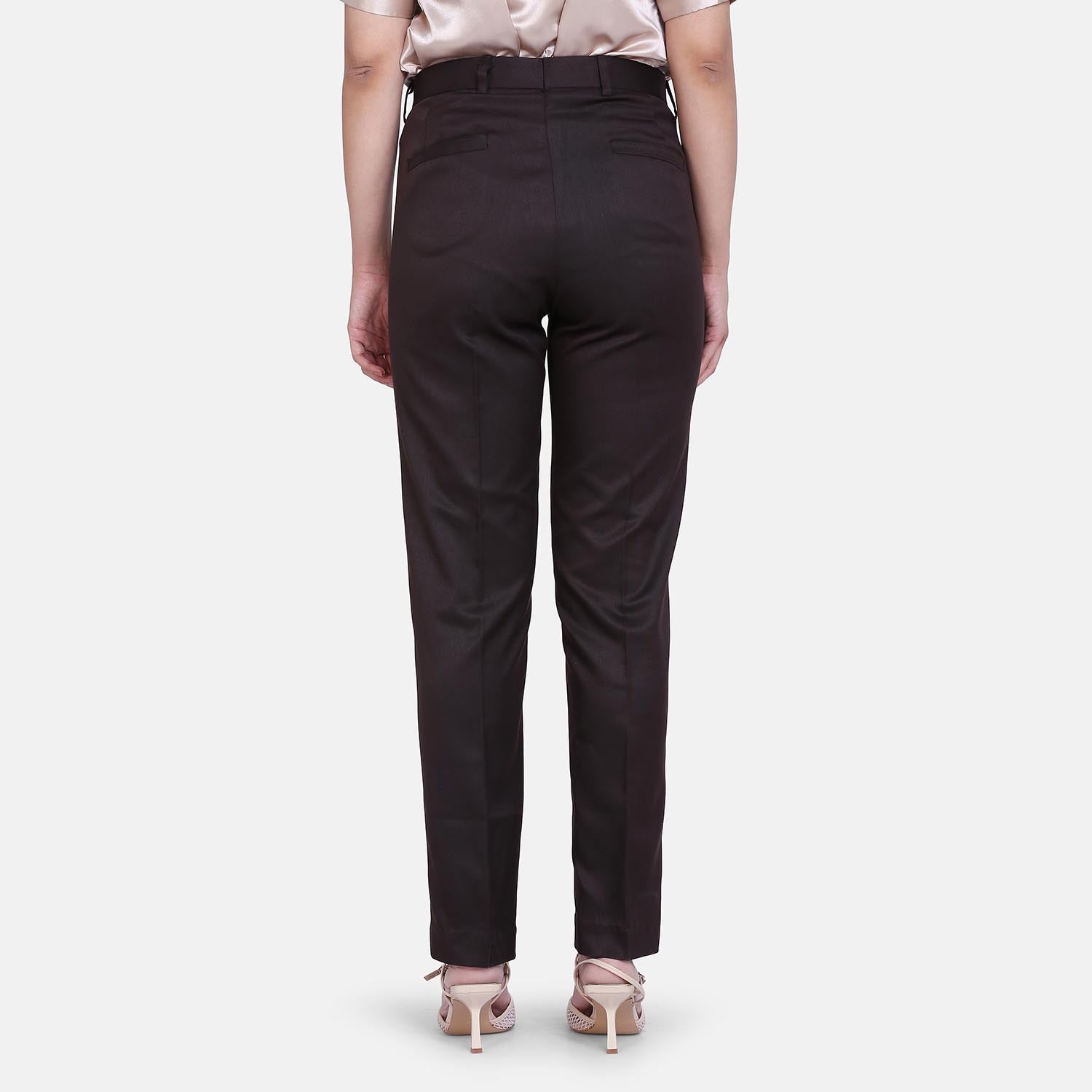 Regular Fit Ladies Brown Poly Cotton Trouser