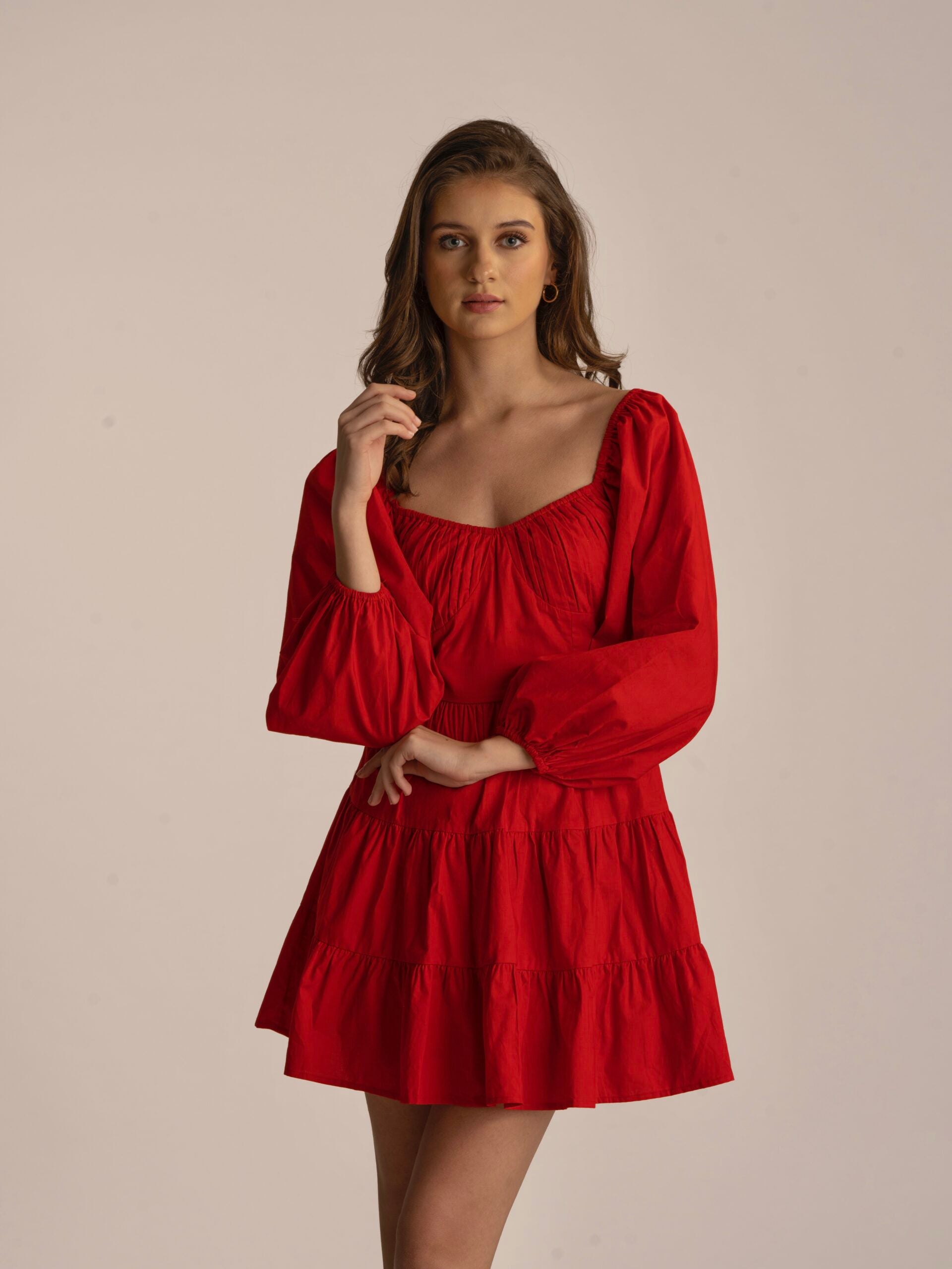 Details: Full sleevesGather detailing on chestAbove the knee length