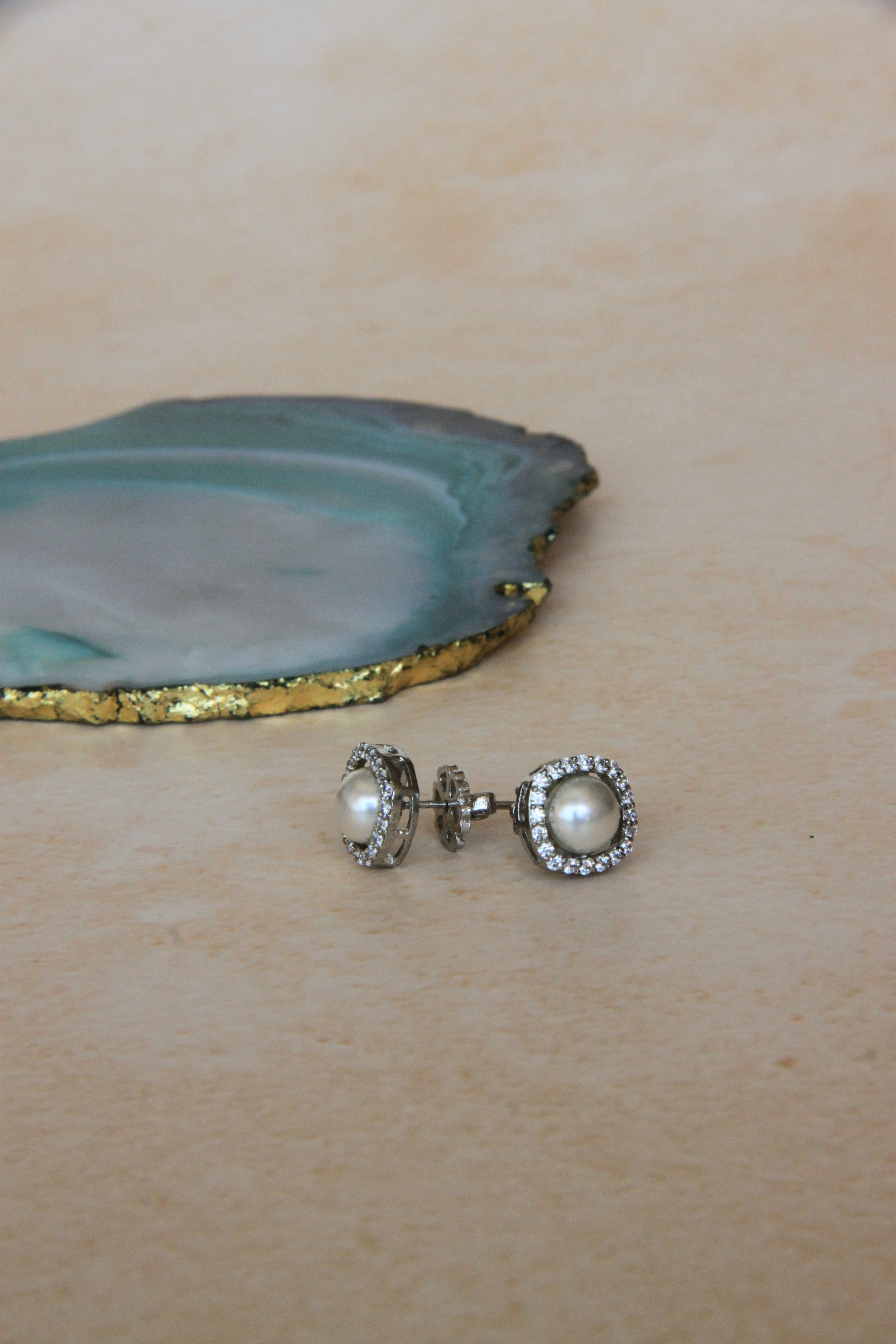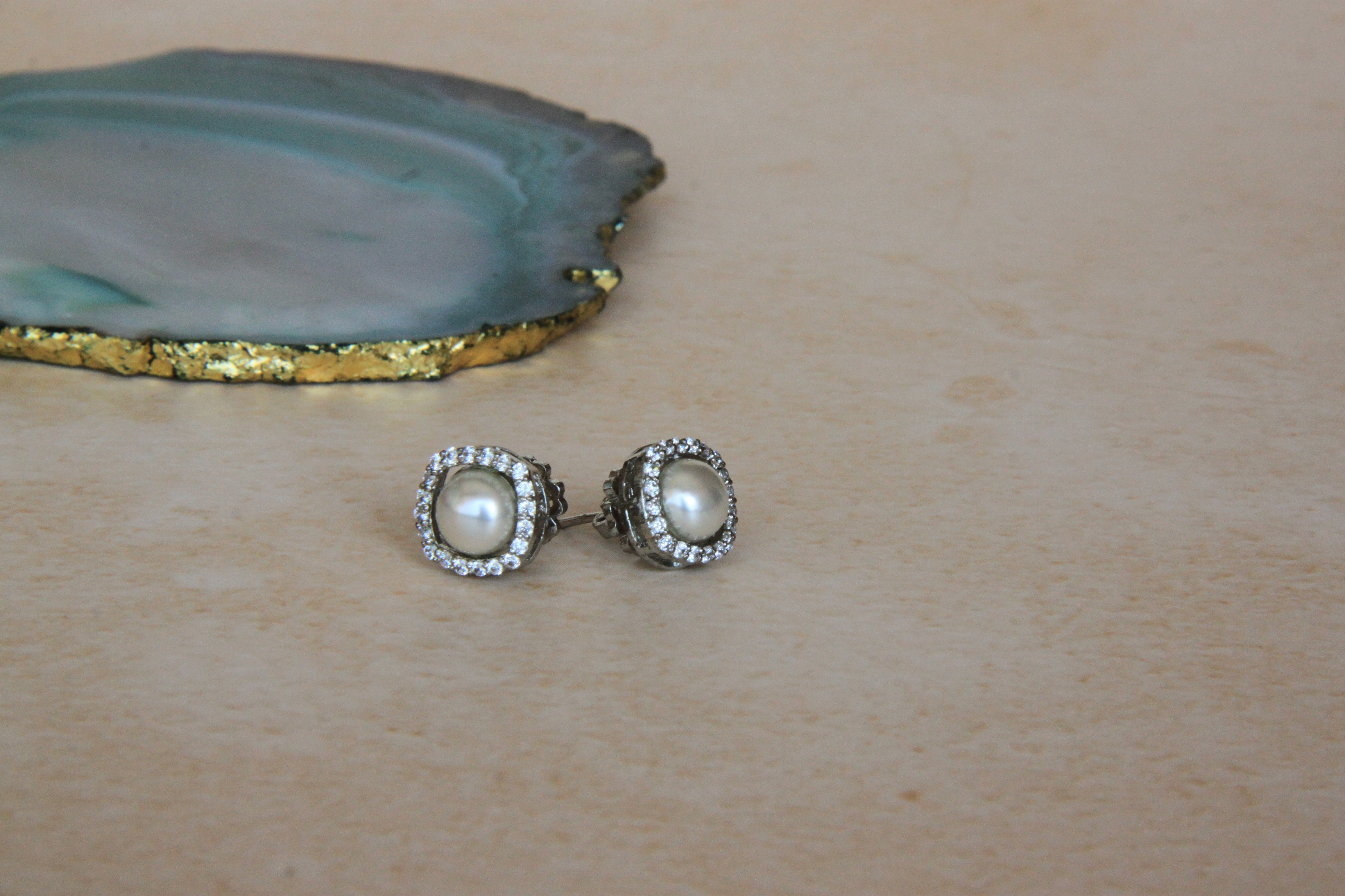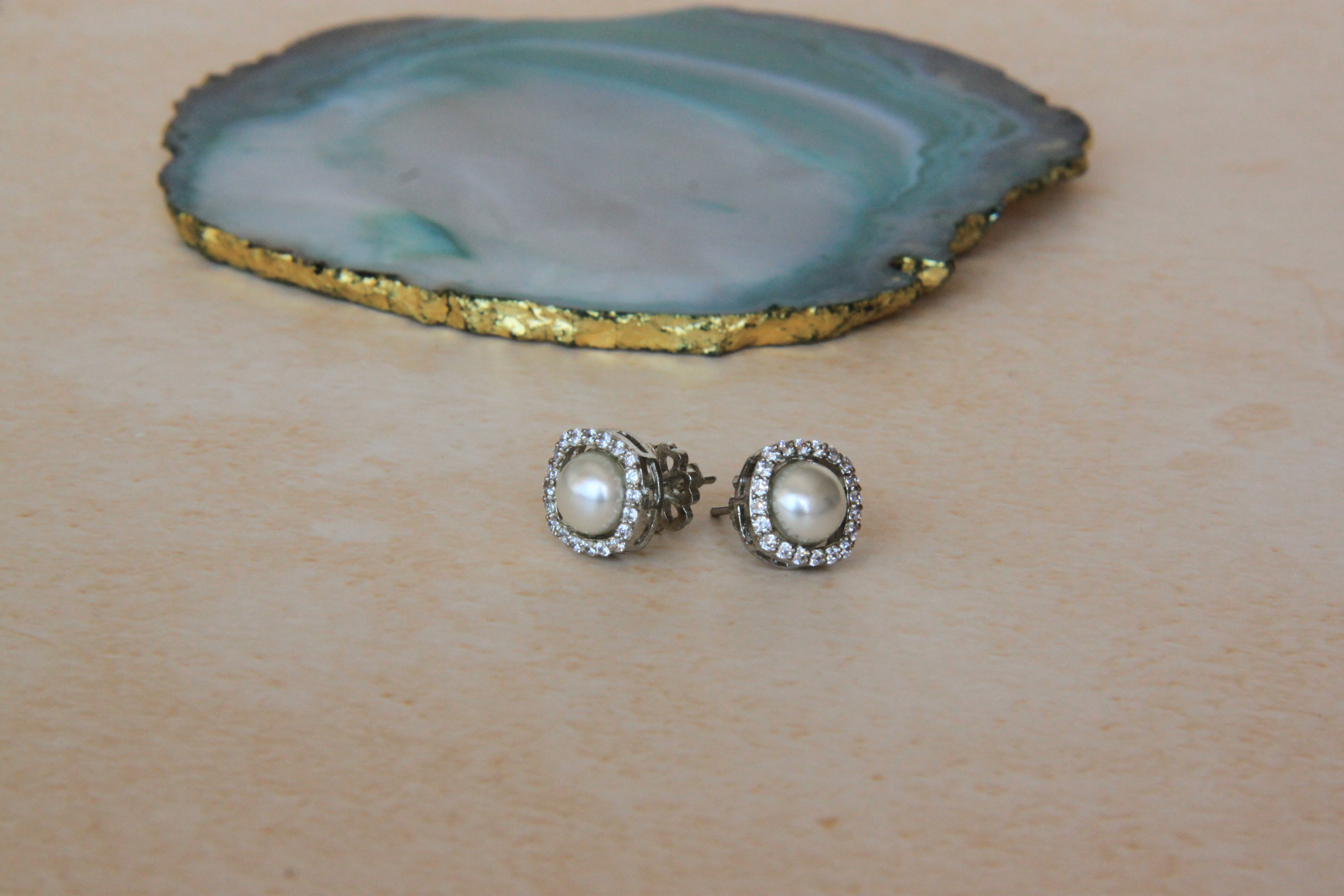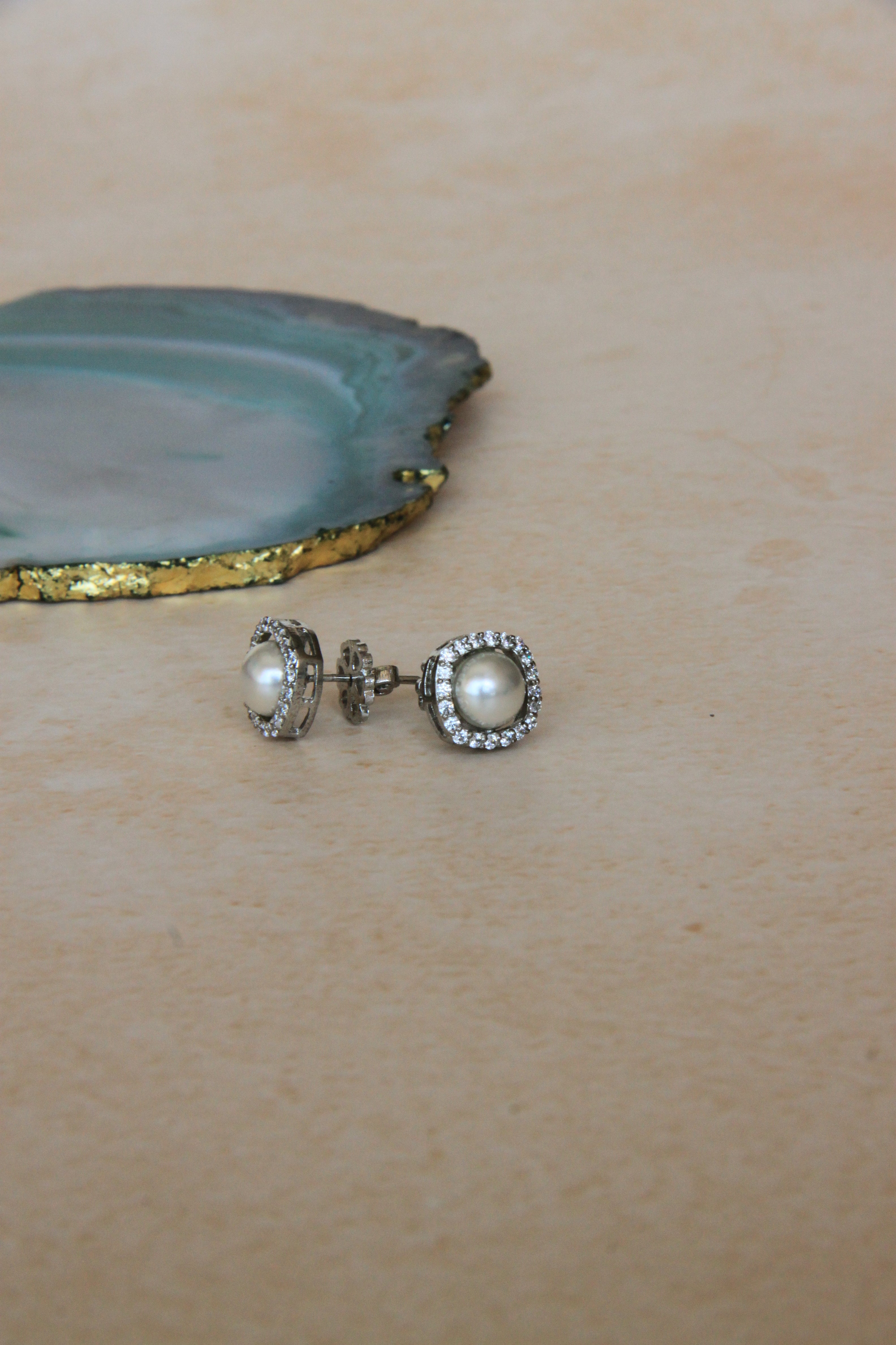 Colour: whiteDetails: centre pearl with halo Certifications: 92.5 sterling silver