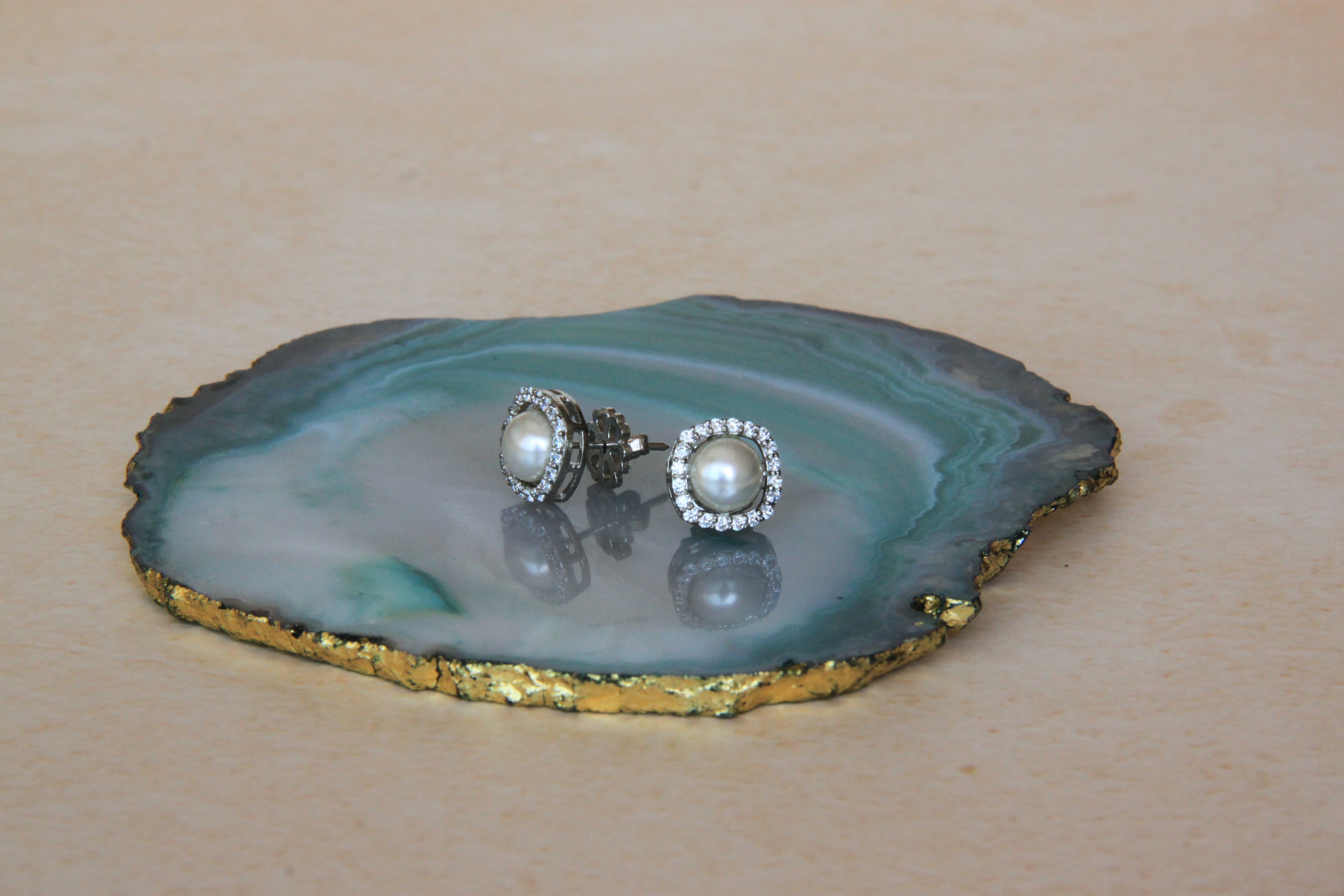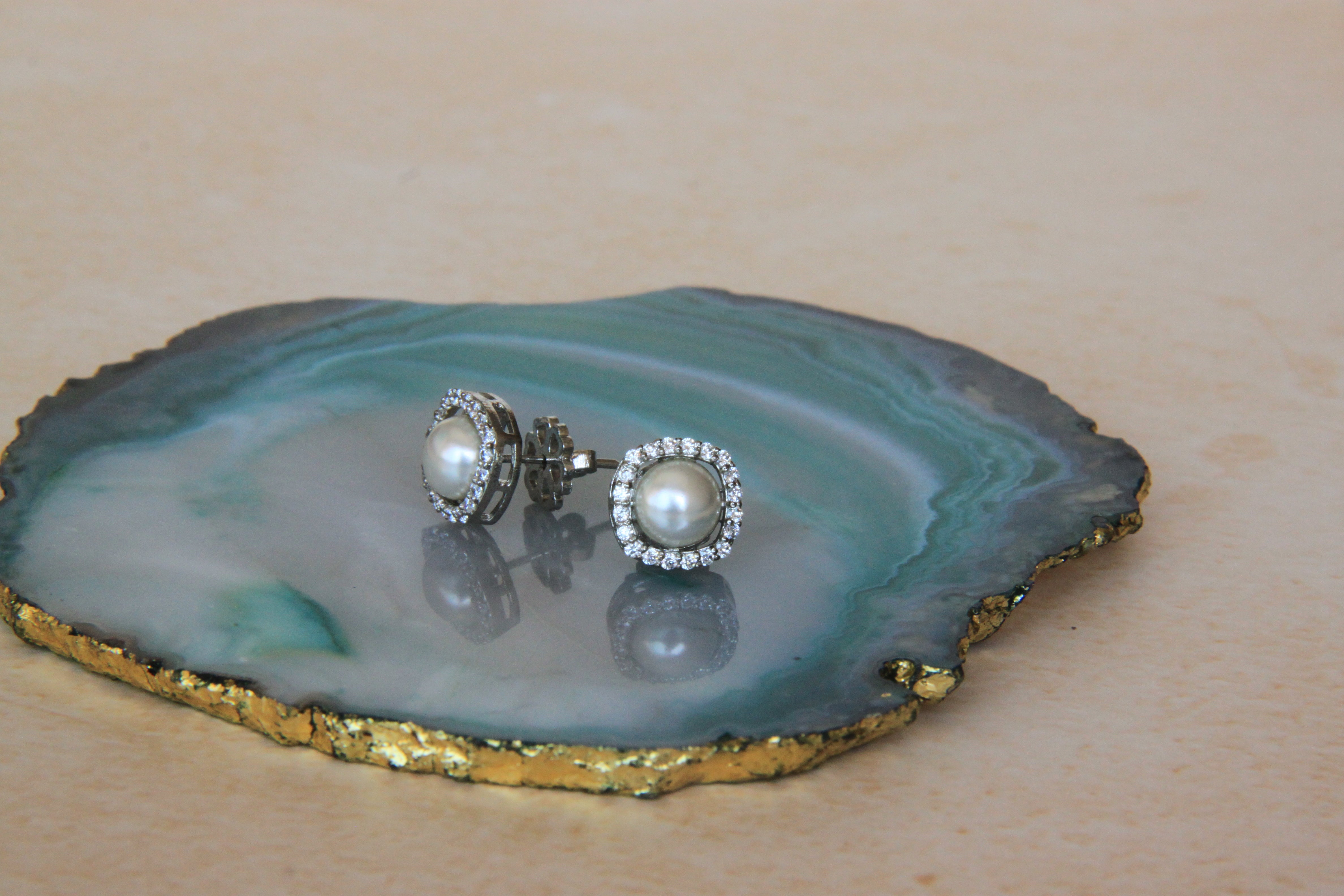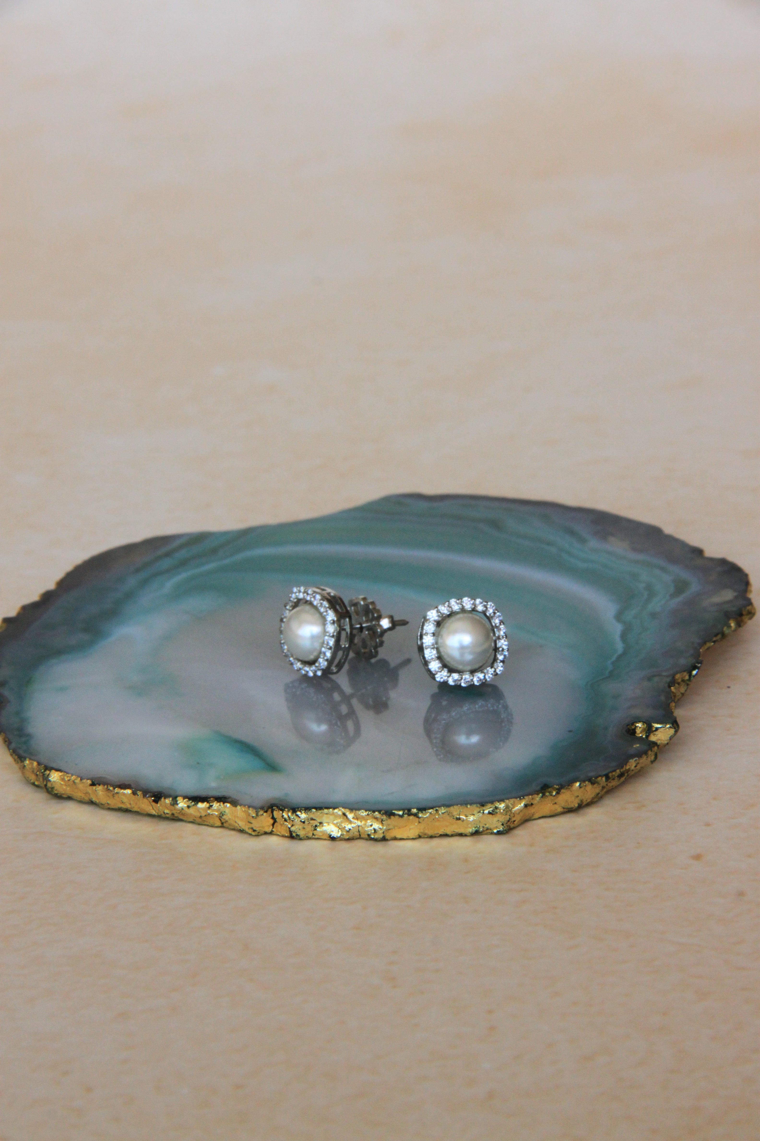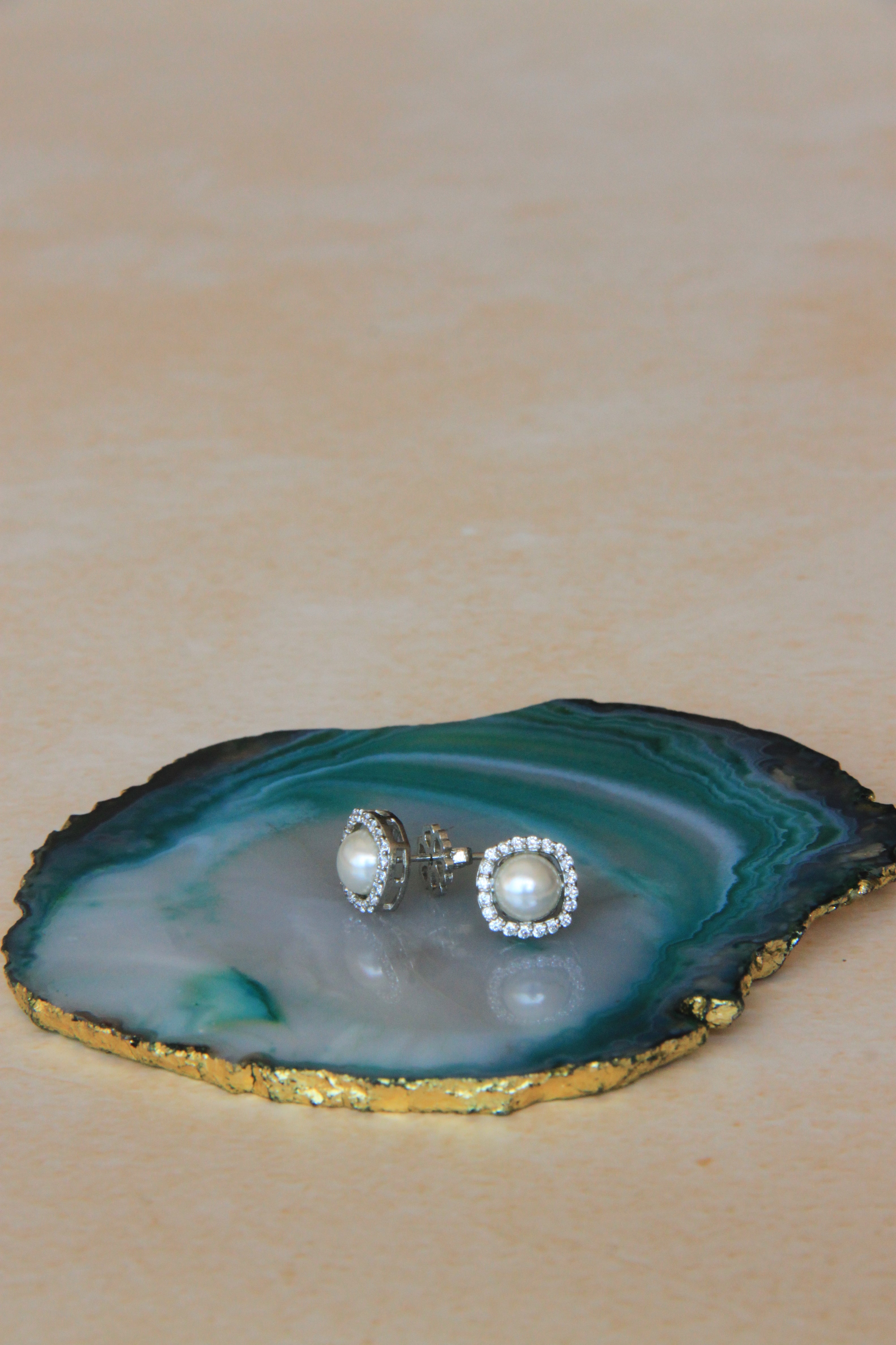 Colour: whiteDetails: centre pearl with halo Certifications: 92.5 sterling silver